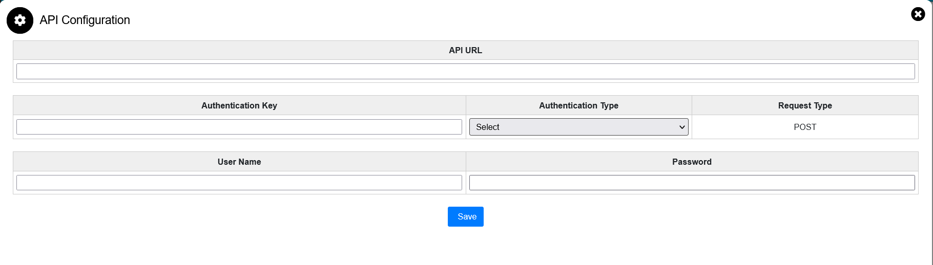 2. After clicking below popup will appear where the details for API configuration is filled as shown :