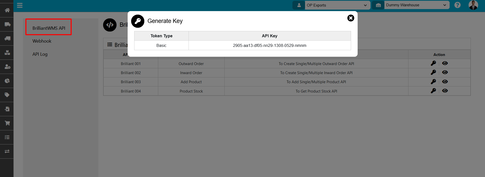 3.After Clicking on the Key ICON the API KEY will be generated as shown below: