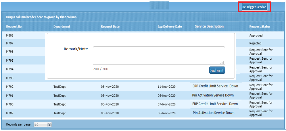 Select the Order from the retrigger screen, Submit the remark and then Click on the Retrigger service to retrigger the order as shown below: