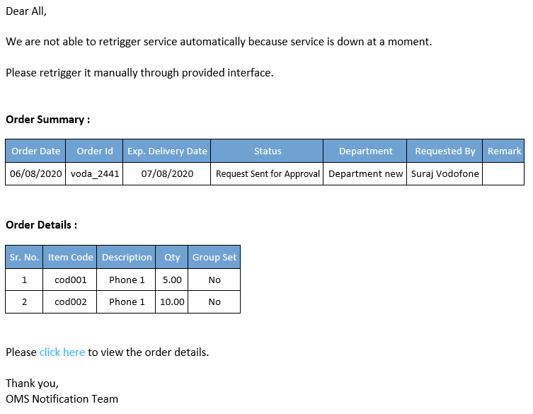 In Case of ERP interface service is Down then the ERP service needs to send one standard error message as Sever Down then WMS will try to retrigger service 03 times in 10-minute intervals through the schedular and if still service not able to receive success response, then WMS will send an email notification to operation team/Users to manually retrigger the service for order.