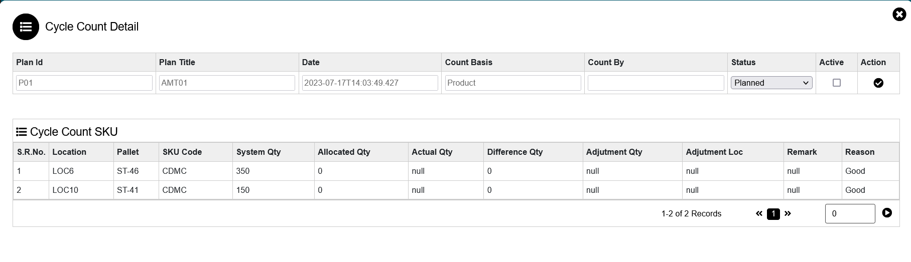 - After clicking on edit button user can view the detailed plan of cycle count.