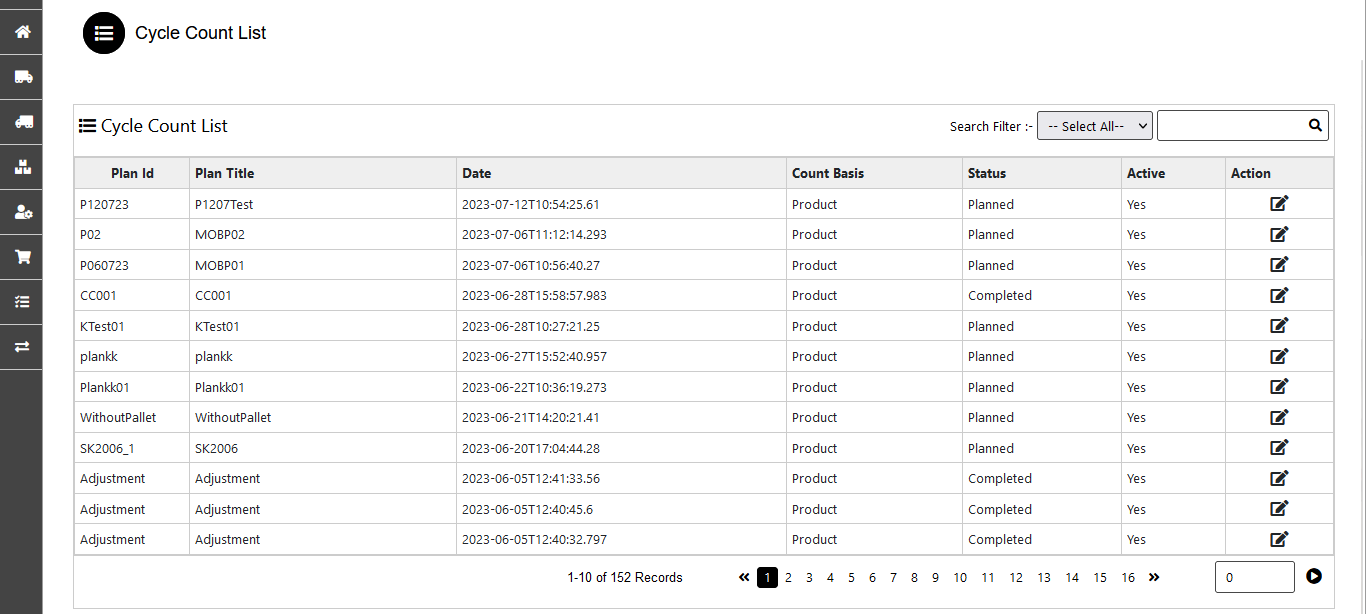 - When you click on the Cycle count menu it shows the list of all cycle count created from inventory & from warehouse