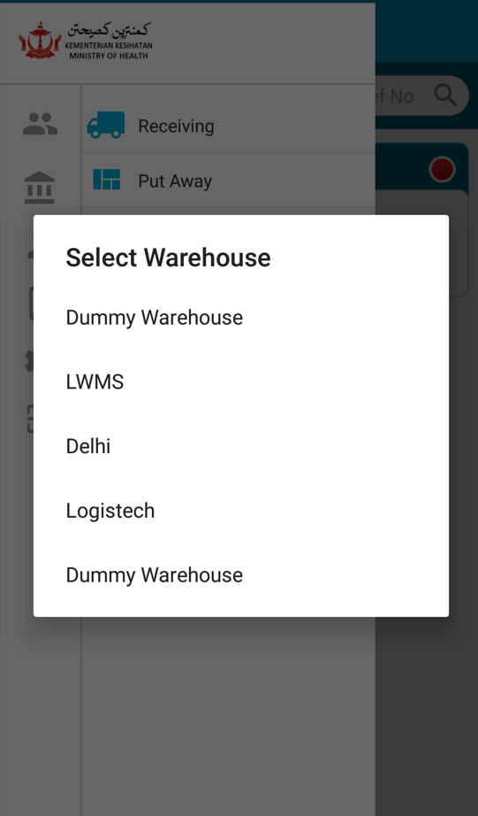 2.Warehouse selection : If user click on the warehouse menu, the warehouse list will get opened, then user need to select a warehouse from the list.