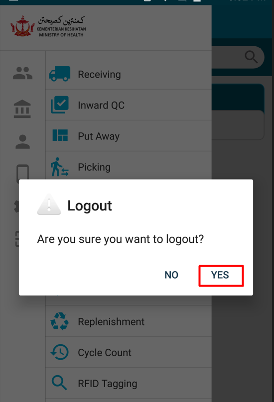 6.If user want to logout from the mobile APK then User need to click on the button which is mentioned in below image & then click on the logout button.