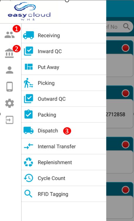 2. Select Warehouse : After selecting customer user need to select the warehouse. For that, user need to click on the warehouse ICON then list will be displayed from the list user need to select on warehouse.