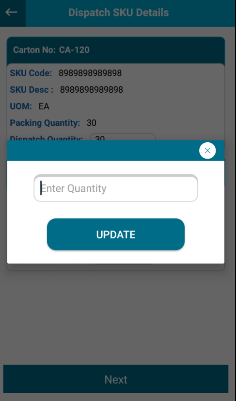 6.Dispatch edit : If user want to edit the quantity then user can edit the quantity less than order quantity & click on update button.
