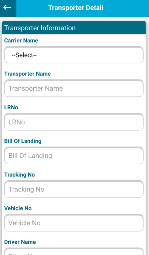 7. Click on next button then system will display the transporter detail page. Fill the LRNO,Tracking no,vehicle no & click on submit button then system will display the dispatch completed successfully.