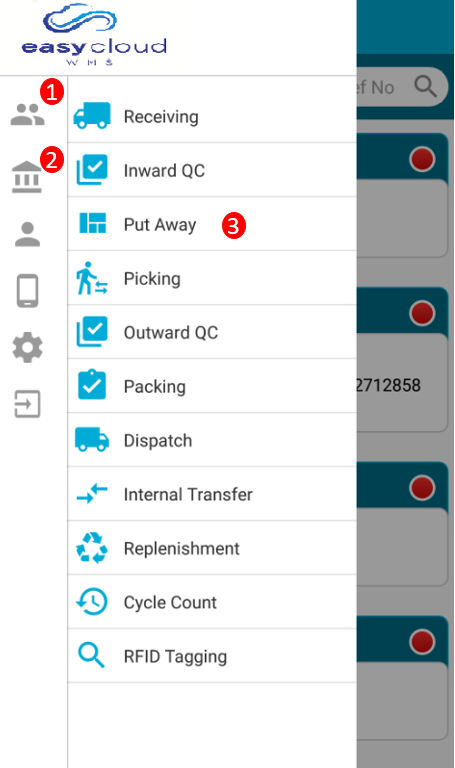 After completing inward QC, the next process is of put away. In put away system will assign the locations to received SKU's. For completing process of put away user need to click on the put away menu from the dashboard & orders will be displayed.