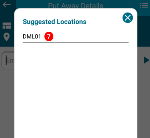 6. After scanning SKU system will suggest the location or else if user want to enter the different location then user need to enter in enter or scan pallet/product code field.