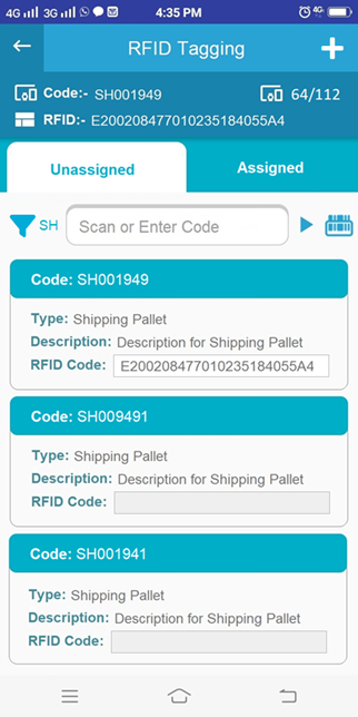 - After scanning RFID code from unassigned menu the code will display in assigned list.