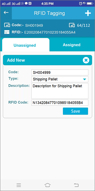 - Then in the field of RFID code user need to enter the RFID code & the code will assign to pallet.