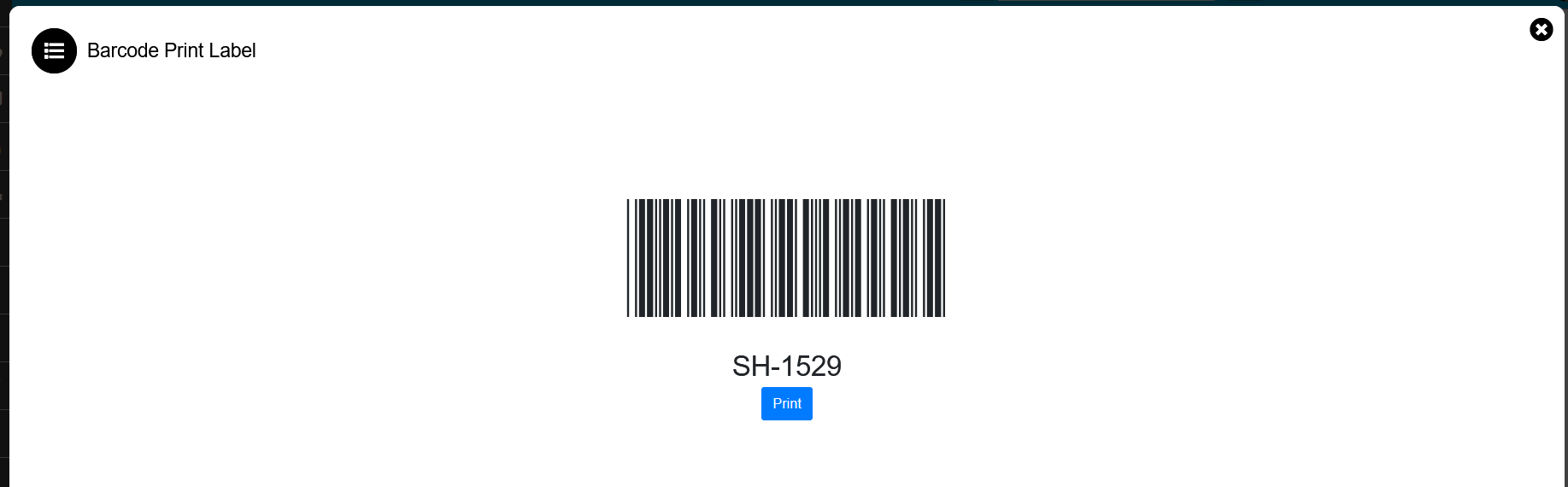 4.Click on action button then system will display serial no with packing type & label size.