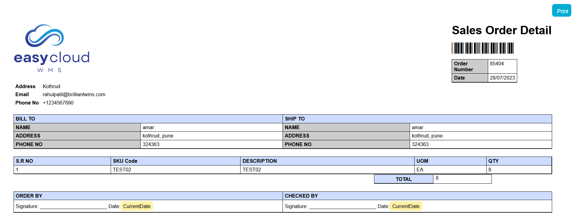 - Here is the Sales order detail report in which more information on the single order system is shown. Product code, UOM, and Qty are shown