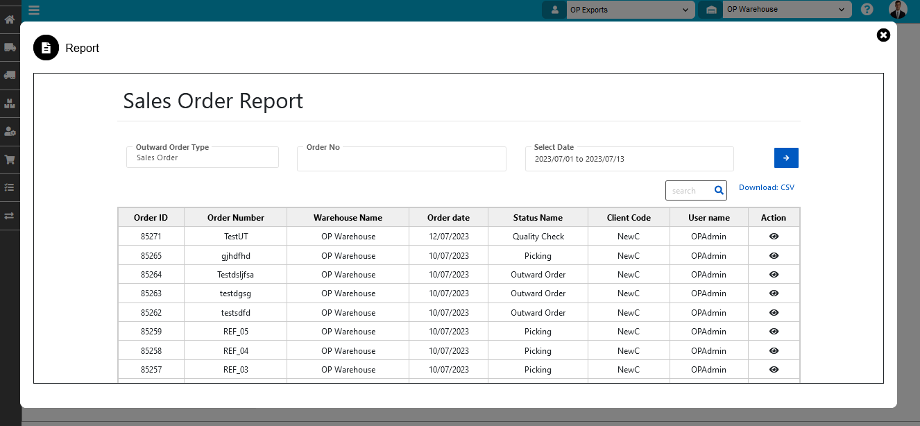 - If we want more information about any particular outward Order number then just click on the Eye Icon against that order under the Action column.